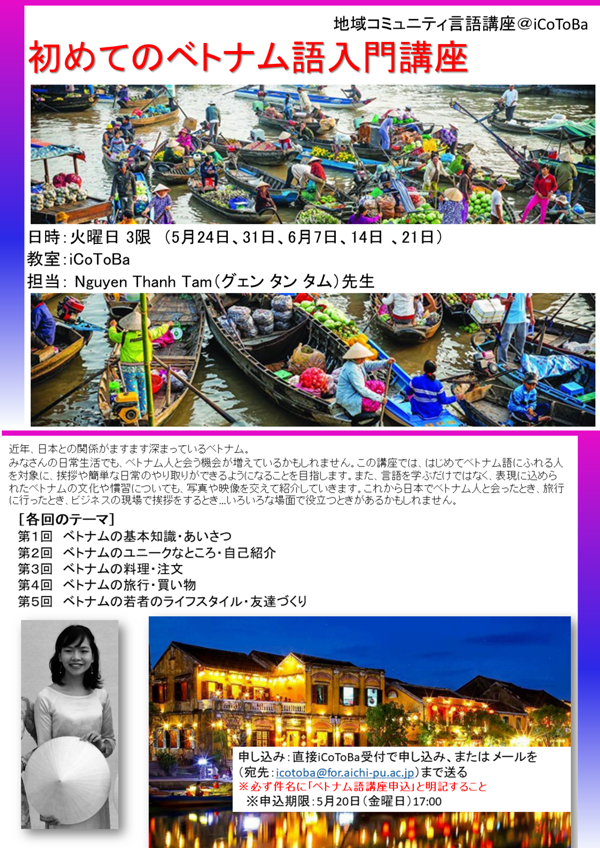 【申込締切】ベトナム語講座:5月20日(金)17時