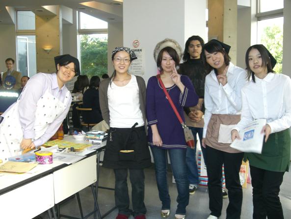 11月18日学生会館の中会議室で学祭の打ち上げ 韓国からの留学生二人も参加 |