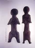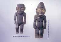 Unas de las ofrendas más destacadas fueron dos figuras antropomorfas de piedra verde que se encontraron en la parte central de Entierro 2 (Foto). Cada una de ellas formaba conjunto de piezas marciales o simbólicas. |